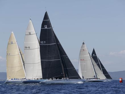 Ce lundi matin, les quatorze 12m JI en lice pour le Championnat du monde se sont entraînés dans la rade de Hyères avec au programme, une course pour prendre ses marques et jauger ses adversaires.