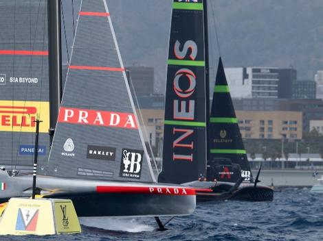 Lors du premier croisement, l’équipe britannique passe derrière la poupe de l’Italie pour aller sur le côté droit du parcours, tandis que l’Italie continue au près sur tribord. L’équipe britannique vire à la limite droite tandis que l’Italie vire à la limite gauche. Lorsqu'ils se rejoignent à nouveau, l’équipe britannique prend la tête et force l’Italie à passer derrière. L’équipe britannique « s’appuie » vraiment sur son foil immergé, inclinant au vent en mode près. À la première marque au vent, le croisement est serré, les deux bateaux étant sur des laylines différentes. L’équipe britannique est juste devant, effectue un virement et abat. L’Italie fait de même et prend une avance de 2 secondes.