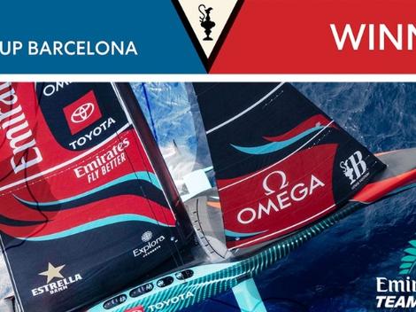 Emirates Team New Zealand remporte la 37ème Coupe de l'America Louis Vuitton avec un écart final de 37 secondes. L’équipage sort de ses cockpits pour célébrer ensemble - une victoire historique ici à Barcelone.