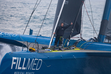 Contraint de faire demi-tour lors de la première tentative après quatre jours de navigation, à la suite d’avaries sur le foil tribord et le safran tribord (collision avec un objet ou un animal non identifié à 500 milles de l'Archipel des Açores et 600 milles du Cap Vert), le Trimaran SVR-Lazartigue était rentré à Concarneau le 6 décembre. « Le bateau est désormais à 100% de son potentiel, souligne le skipper. L’équipage est reposé et à fond. Nous allons essayer d’être opportunistes dans les heures et les jours qui viennent. Même si le vent a un peu molli ce matin et malgré l’instabilité du vent, nous sommes assez rapides en naviguant à plus de 30 noeuds. Ce fut un convoyage vers la ligne de départ assez tonique. Il fallait arriver sur zone avant un front froid avec du vent de sud-ouest très fort. On a quand même eu des pointes jusqu’à 48 noeuds. Ce n’est pas rien même si ça n’a pas duré longtemps. Cette fenêtre est plutôt prometteuse pour la suite avec un très bon temps à l’équateur et un bon temps au cap de Bonne Espérance, même si c’est plus éloigné. Pas mal de modèles convergent sur des situations favorables sur du long terme. On a regardé toute la nuit et ce matin s’il n’y avait pas mieux dans les jours qui viennent. On regardera aussi ce soir mais pour le moment nous sommes contents d’être partis et nous ne devrions pas faire machine arrière. On avisera évidemment si ça évolue. Nous surveillons aussi les jonctions de l’Atlantique Sud. Lors de son record, Francis a été incroyable dans l’océan Indien. C’est difficile d’oser espérer améliorer le record si nous ne sommes pas dans une situation aussi exceptionnelle que lui dans l’Indien ou sans un peu d’avance. Nous allons partir au portant le long des côtes portugaises avec un tribord qui va nous amener ce soir à faire une aile de mouette dans l’anticyclone pour prendre la rotation du vent à droite pour faire un long bâbord qui devrait nous amener jusqu’à l’équateur. Nous avons plutôt beaucoup d’espoirs avec des signaux au vert. »