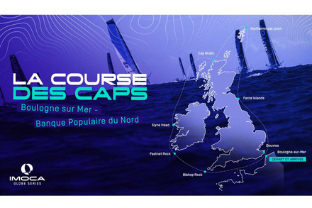 Le départ de la Course des Caps - Boulogne-sur-Mer - Banque Populaire du Nord sera donné le 29 juin depuis le port de Boulogne-sur-Mer, dans le Pas-de-Calais. les onze IMOCA engagés mettront le cap vers le nord, pour un périple exigeant autour des îles britanniques, via les Shetland.