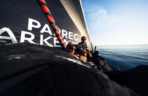 Enfin, vers 2h30 du matin, un flux de nord-ouest de 8 à 10 nœuds a permis aux leaders - Paprec Arkéa, Biotherm (Paul Meilhat), Team Malizia (Boris Herrmann) et Allagrande Mapei (Ambrogio Beccaria) - de faire cap plein sud et d’accélérer franchement.