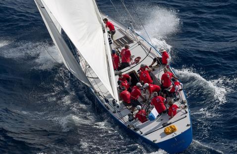 Difficile de rester insensible à l’arrivée d’Atlantic, majestueuse goélette aurique de 64 mètres. Construite en 1903 et entrée dans la légende en 1905 avec son record de l’Atlantique mené par Charlie Barr, un exploit resté imbattu pendant 75 ans, elle a été reconstruite à l’identique par Ed Kastelein en 2010. Pour sa première participation aux Voiles, elle fête les 120 ans de cet incroyable record, rappelant qu’elle avait parcouru 341 milles en 24 heures à une moyenne de 14,1 nœuds. Un véritable monument flottant, en lice pour le Trophée Rolex face à huit autres Big Boats.