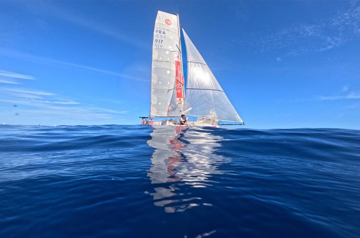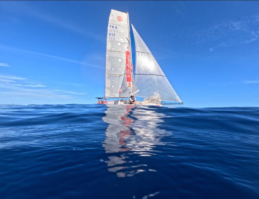 Une belle manière de marquer des points, avant que ces skippers allongent la foulée. Ce que les skippers de foilers n’ont pas tardé à faire depuis ce matin, à l’image de Benoît Marie (1067-Nicomatic Petit Bateau) ou de Matéo Lavauzelle ( 1044- Brets), qui signe une belle remontée ces dernières heures à la la barre de son Mini 6.50 équipé de grands foils jaunes. Ces deux bateaux dépassent désormais les 13 nœuds de moyenne dans des vents établis au nord, nord - est qui devraient se renforcer progressivement à mesure qu’ils se rapprochent du flux d’alizés profonds, synonymes de belles glissades... et de bonne régalade !