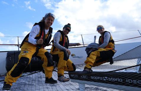 Avec le franchissement de cet important marqueur et ce passage dans l’hémisphère sud, Alexia Barrier, Dee Caffari, Annemieke Bes, Rebecca Gmür Hornell, Deborah Blair, Molly LaPointe, Támara Echegoyen et Stacey Jackson attendent de Neptune non seulement protection et bénédiction, mais aussi très concrètement l’accès à ces fameux alizés de sud est. Ces vents bien établis qui soufflent depuis les côtes d’Afrique du Sud jusqu’à la corne du Brésil, permettent de contourner l’anticyclone centré sur l’île de Sainte Hélène au cour de l’Atlantique sud. C’est donc aux allures proches du lit du vent que le trimaran géant changera d’hémisphère. Sa position relativement très est lui offrira un angle au vent intéressant pour allonger la foulée en accompagnant l’adonnante, quand le vent viendra progressivement souffler par le travers du bateau. L’occasion pour Alexia et ses drôles de navigatrices de « couper un peu le fromage Atlantique » à l’écart des rivages Brésiliens. Tous les esprits du bord se tourneront alors vers la transition à réussir avec les systèmes perturbés du grand sud, boulevard vers les autres grands marqueurs de ce Trophée Jules Verne, le Cap de Bonne Espérance et son voisin, le Cap des Aiguilles, qui scande l’entrée dans l’Océan Indien, d’ici une semaine espère t’on.