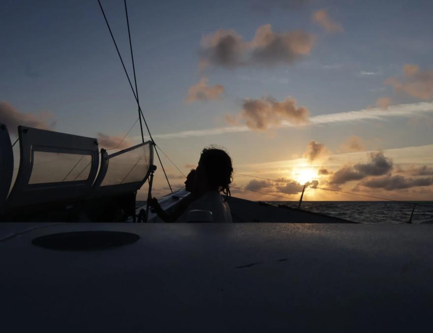 Ce n’est qu’avec la tombée de la nuit que le puissant souffle des alizés de nord est s’est enfin manifesté dans les voiles du trimaran géant. Vint alors le moment toujours redouté de réduire la toile en conséquence, et le hook réfractaire de la grand voile s’est de nouveau montré récalcitrant, contraignant Alexia Barrier, Dee Caffari, Annemieke Bes, Rebecca Gmür Hornell, Deborah Blair, Molly LaPointe, Támara Echegoyen et Stacey Jackson à une nouvelle opération démontage-remontage des plus pénible, mais aussi pénalisante pour la vitesse.