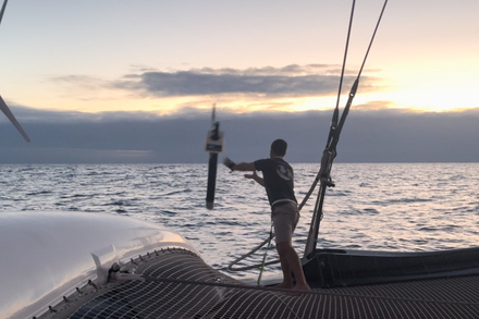 Dès son premier tour du monde, à bord d’Yvinec I, Guirec Soudée s’est équipé d’un PlanktoScope pour analyser, depuis son voilier, les planctons récoltés. Depuis lors, il s’engage dans des projets de science participative. Ainsi, pour son tour du monde à l’envers sur l'Ultim MACSF, il s’est doté de plusieurs instruments de mesure scientifique pour contribuer, à son échelle, à la collecte de données dans des latitudes moins fréquentées : le dernier prototype de PlanktoScope signé FairScope, un flotteur Argo en collaboration avec l’Ifremer, une bouée dérivante SVP avec Météo-France, ainsi que différents capteurs physiologiques et biométriques du programme Hatch Systems, en collaboration avec l’Université de Caen.