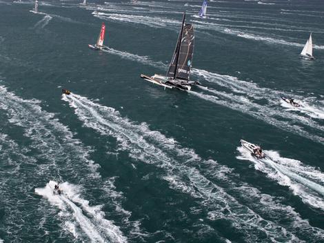 27 mètres, c’est la longueur du trimaran William Saurin mené par Eugène Riguidel, un géant à l’époque. La taille des navires sera ensuite progressivement limitée, notamment à 60 pieds (18.28m) de 1990, victoire mémorable de Florence Arthaud sur son trimaran Groupe Pierre 1 er , à 2006, édition remportée par Lionel Lemonchois dans le temps canon de 7 jours et 17h sur Gitana 11. Il faudra attendre 2010 et les 31.50m de Groupama 3 pour retrouver les géants.