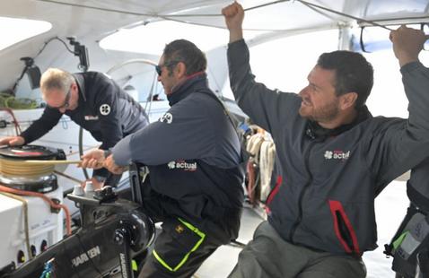 L’évènement majeur de la semaine, c’est bien sûr le départ des Ultims sur la Finistère Atlantique. Cette nouvelle course de 3500 milles passant par les Canaries et les Açores aurait dû être une répétition idéale avant le grand rendez-vous automnal. Mais le départ vendredi de Concarneau, fief de François Gabart, avait un triste côté surréaliste, son trimaran bleu SVR Lazartigue étant interdit de participation, suite à la fameuse affaire de la réputée non-conformité de son cockpit (selon la classe 32/23). Francis Joyon aimant s’entraîner dans son coin, Romain Pilliard et son Use It Again! étant encore en escale à Cape Town dans son tour du monde à l’envers, et Arthur Le Vaillant n’étant pas encore officiellement partant, ils ne sont donc que quatre à s’élancer dans le petit temps. C’est leur première confrontation directe depuis la dernière transat Jacques Vabre. Le Gitana de Charles Caudrelier s’installe aux commandes, Actual a un peu de mal à suivre le rythme, mais Sodebo et Banque Populaire ont bien progressé et ne lâchent rien. A tel point qu’Armel le Cleac’h prenait la tête tard hier au soir dimanche, juste après avoir passé l’île de Lanzarote. Mais avec encore 2000 milles nautiques devant les étraves, il peut s’en passer des choses avec des voiliers aussi rapides.