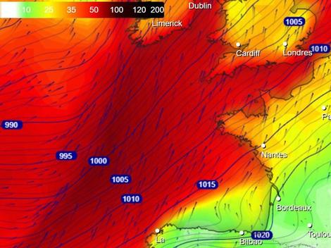 Il va falloir que ce front perturbé se soit évacué. C’est dans la nuit de lundi à mardi un qu’il va s’évacuer par la Bretagne et après donc le passage de cette perturbation et bien on retrouvera des conditions plus modérées comme on dit. Alors ça sera encore assez tonique, ça ne va pas être le calme plat, on restera quand même sous l’influence d’un courant perturbé, mais avec des vents beaucoup moins forts et une mer qui sera également moins forte. Donc on a vraiment l’espoir de faire partir les marins ou mardi après-midi ou mercredi, on va essayer d’affiner ça. Mais en tout cas on va vers l’amélioration, c’est une bonne chose, et donc la Route du Rhum va pouvoir assez rapidement partir.
