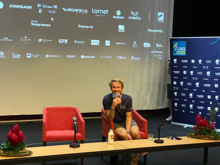 Après le bain de foule, les saluts et les photos, il est temps pour les skippers de répondre aux questions de la presse. Et s'il y a bien un sujet sur lequel Charles et François sont d'accord et enthousiastes, c'est leur bord à bord aux Açores "C’était le long bord de descente, il y avait encore beaucoup de mer, le vent est monté fort on allait à 45 nœuds. Je ne pensais pas que François allait pousser autant son bateau mais il a suivi. Je me suis fait un peu peur, car c’est un moment où je me suis dit il faut dormir, mon pilote a décroché, le bateau a empanné, je l’ai entendu et j’ai réussi à me jeter sur la barre et à récupérer le truc. La course aurait clairement pu s’arrêter là. Je pense qu’on a dépassé les limites du raisonnable, on était vraiment à fond ! Je me suis senti menacé, il navigue très bien c’est très propre. C’était beau de le voir naviguer à côté de moi. La victoire est encore plus belle !" nous raconte Charles Caudrelier. "Tous les deux on est allé chercher les limites du bateau, de l’homme. Il y avait de l’émulation peut-être d’être à deux, de vouloir être à fond." décrit avec le sourire François Gabart et d'ajouter "si je devais choisir le moment dont je me souviens le plus, c'est celui-là".