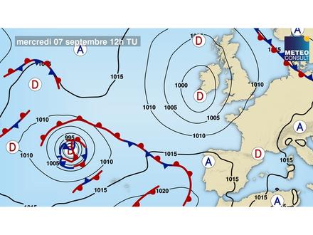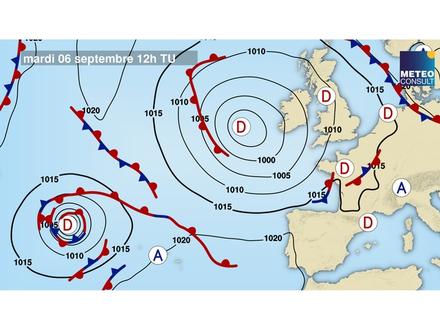 Avec le rapprochement de la dépression en mer celtique, la traîne s’orientera à l’ouest sur nord Gascogne. Elle maintiendra un courant très perturbé d’ouest-sud-ouest pour 20 nœuds, avec des rafales sous grains pouvant monter jusqu’à 35 nœuds.