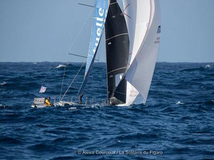 A l'affût dans son tableau arrière de Tom Laperche, Gaston Morvan (Région Bretagne - CMB Espoir), qui avait brillé déjà l’an passé en remportant le classement bizuth (7è) et compagnon d’écurie de Tom, doit le pousser à se dépasser. Positionnée en troisième position, Élodie Bonafous ( QUEGUINER - La Vie en Rose) donne elle aussi une belle leçon de combativité. En constante progression, on sait la jeune femme excellente barreuse et dure au mal. Elle pourrait, ici, à Saint-Nazaire, elle aussi entrer dans la légende de la course. A ce jour, l’anglaise Clare Francis est la seule femme à avoir remporté une étape de la course, en 1975. Si elle monte sur la troisième marche du podium, Élodie pourrait donc devenir la deuxième femme de l’histoire de La Solitaire du Figaro à accrocher un podium d’étape.