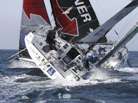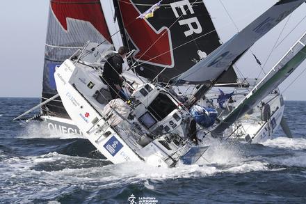 Après un premier départ à 14h30 suivi par un rappel général de la flotte, les concurrents se sont élancés à 14h43 à l’assaut de l’ultime étape de La Solitaire du Figaro Paprec. Trois marins - Gaston Morvan (Région Bretagne - CMB Performance), Romain Le Gall (Centre Excellence Voile - Secours Populaire 17) et Arthur Hubert (MonAtoutEnergie.fr), ont néanmoins écopé de rappels individuels pour avoir volé le départ. À peine deux milles après le top départ, la remontée vers la bouée de dégagement a été le théâtre d’une belle de bataille de virements de bords des deux côtés du plan d’eau. Alors que Basile Bourgnon (Edenred) semblait bien lancé, Corentin Horeau (Banque Populaire), qui a déboulé de l’autre côté, a croisé devant et lui a volé la vedette au passage de la marque. Pas de round d’observation qui tienne entre les deux plus solides prétendants à la victoire finale.