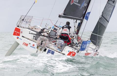 Du côté du Défi Paprec, les équipages ont eux aussi connu une nuit difficile et naviguent actuellement juste derrière les solitaires. Seuls Hugo le Clech et Arthur Meurisse (Mieux) ont réussi à intégrer la flotte et disposent ce midi de 2 milles d’avance sur Pier Paolo Dean et TYiphaine Rideau (DEANRACINGTEAM).