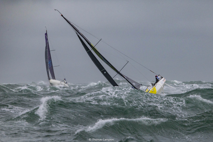 « Nous étions très proche de la limite haute pour un départ à 14h30, avec un état de la mer qui était encore très fort sur la partie Nord-Bretagne et des conditions météo au départ proches de la trentaine de nœuds avec des rafales à 35. Après plusieurs échanges et discussions, nous avons préféré décaler le départ à 19h, dans des conditions météo plus clémentes, qui vont permettre de réduire l’accidentologie, à la fois pour les coureurs et l’organisation. Le but est que les marins puissent s'exprimer à armes égales sur cette étape. Nous avons donc naturellement pris cette décision. Il faut, au moins, que le départ se fasse dans des conditions qui soient praticables et limitant ainsi le risque de dommages matériels. » analyse Yann Chateau.
