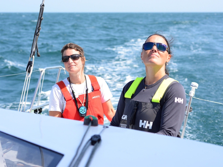 Morgane : "Nous nous sommes rencontrées lors d’entraînements réalisés au mois de mars dernier, avec un ami commun : Louis Duc. Julia avait quitté la montagne pour la mer, elle commençait déjà à s’investir dans la course au large. Nous nous sommes retrouvées sur ce bateau et la connexion a été très forte. J’ai vu en elle une grande motivation, un gros potentiel, son investissement était sans limite. À ce moment-là je cherchais une équipière. Tous les marins qui m’ont appris à naviguer étaient des hommes et j’ai entrepris la dernière Transat Jacques Vabre avec mon compagnon... Naviguer avec des femmes est donc quelque chose que j’ai très peu fait et cela m’intéressait. Ça a tout de suite été évident avec Julia".