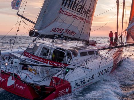 "Logiquement, les bateaux concurrents devraient être devant nous. Ils ont gommé leurs défauts de jeunesse et sont très rapides. Mais nous avons vu sur la Rolex Fastnet Race (5e place) puis sur le Défi Azimut (6e place) que nous sommes capables de les talonner dans certaines conditions. Nous espérons finir cette Transat Jacques Vabre entre la 5e et la 8e place. Notre motivation est d'autant plus forte que nous poursuivons également un objectif solidaire. Nous sommes conscients que plus nous serons à l'avant, plus on parlera de nous, plus nous réussirons à lever de l'argent pour pouvoir sauver 25 enfants. Jusqu'à la fin de la Transat Jacques Vabre, pour chaque nouveau fan sur les comptes Facebook et Instagram d'Initiatives-Cœur, 1€ est versé par les sponsors-mécènes du bateau (Initiatives, K-LINE et VINCI Energies) à l'association Mécénat Chirurgie Cardiaque, qui opère en France des enfants venant de pays défavorisés et atteints de graves malformations cardiaques".