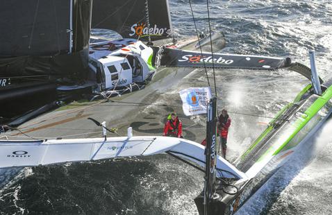 Le maxi trimaran Sodebo Ultim 3 et son équipe technique se sont donnés rendez-vous à Funchal (Madère) pour réparer le foil tribord, endommagé lors d'une collision avec un OFNI survenue 24 heures plus tôt. Une réparation express, qui en quelques heures a permis aux deux Thomas de repartir en course ce matin à 6 heures. Même si le Maxi Sodebo Ultim 3 ne repart pas avec 100% de ses capacités, les skippers eux repartent motivés et les 6 500 milles restants laissent place à beaucoup d'opportunités.