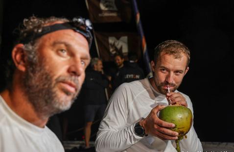 Bientôt l’intégralité de la flotte aura passé Fernando de Noronha. Les équipages subissent la chaleur, et les empannages « ont fatigué les bonhommes » nous disait Jean-Marie Dauris (Maître CoQ) ce matin. Leur dernier bord tribord amure aurait dû les reposer, cependant les conditions ne le permettent pas forcément. Jérémie Beyou à bord de Charal nous raconte « Le vent est un peu revenu depuis une heure ou deux, donc ça avance un peu mieux. Nous avons moins d’empannage mais un vent beaucoup plus instable en revanche, c’est fatiguant. Je préférais plus de manoeuvres et un schéma clair. » Les marins sont partagés dans un sentiment de hâte de retrouver la terre, et de plaisir en mer, tant l’arrivée approche. Jérémie ajoutait « Nous prenons beaucoup de plaisir à bord, le bateau est en super état et c’est top d’être là pour la bagarre. Mais c’était une Transat longue donc nous serons ravis d’arriver. Nous essayons de profiter des dernières heures mais nous sommes un peu excités de retrouver la terre aussi. »