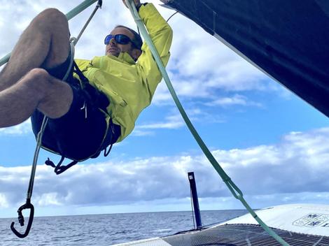 Le vent passe est au niveau de la flotte des Class40 qui se scinde en deux : les sudistes, qui profitent de la bascule et ceux qui persévèrent par l’ouest. Joint à la vacation du petit matin, Cédric Chateau à bord du récent scow Seafrigo-Sogestran explique : « En ce moment les vents sont assez variables et assez est, nous avons fait pas mal de sud pour profiter de la bascule. Nous essayons de bien faire avancer le bateau surtout. Nous sommes à vue de Banque du Léman et d’Edenred et c’est sympa. Nous touchons de bonnes vitesses et nous nous en sortons bien par rapport aux stars de la série. » La course reste serrée et il reste du chemin. Les concurrents ne lâchent rien : « Nous nous recalons, nous faisons un peu de sud pour toucher des alizés. Nous surveillons nos concurrents de derrière, ils risquent de toucher les alizés en même temps que nous et de revenir, mais nous restons dans le match. » nous confiait Hervé Thomas, skipper du Class40 Saint Yves Services - Odegam également ce matin.