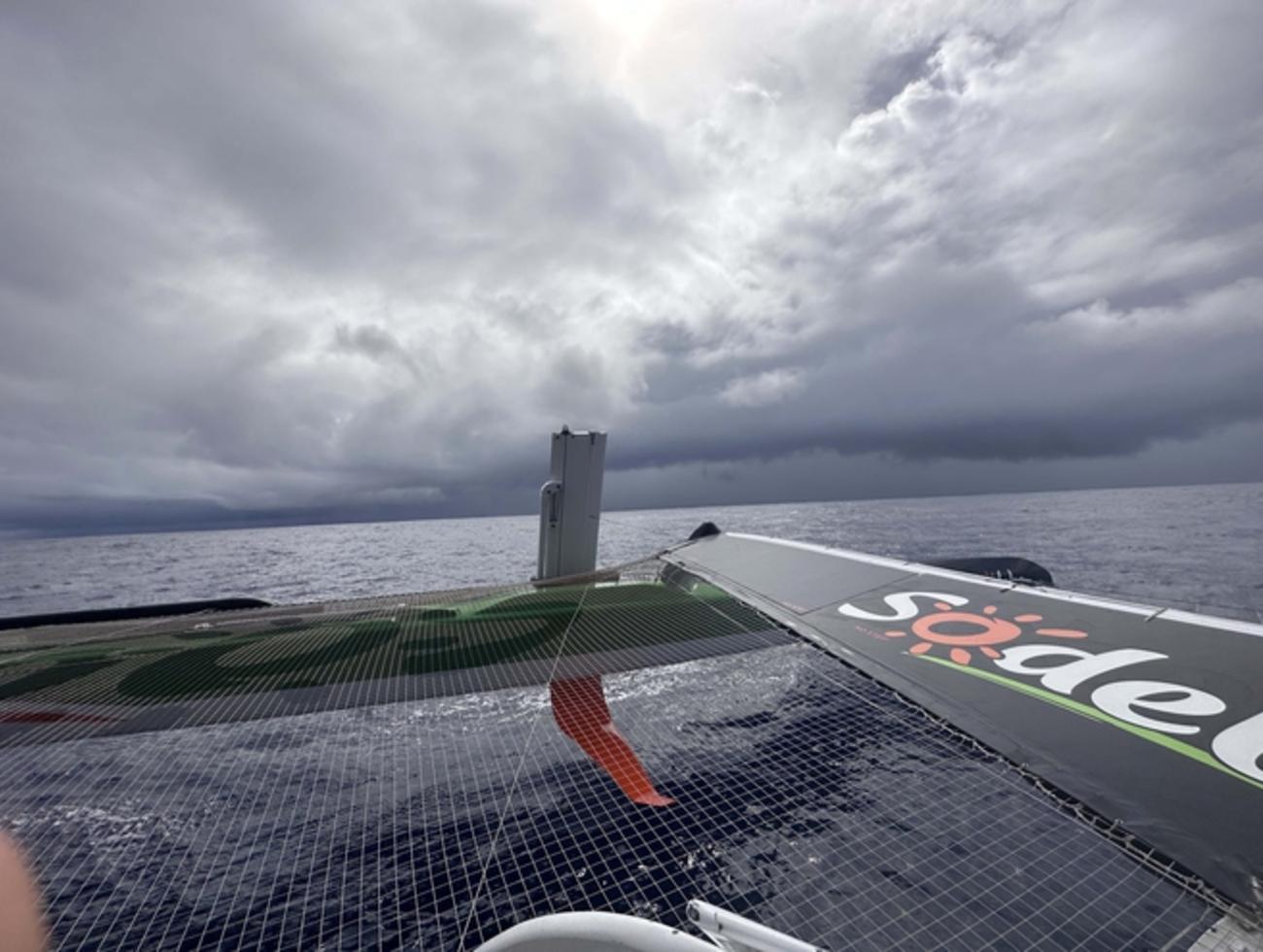 « On fera les comptes ce soir, mais je ne suis pas sur que le Pot au noir qui a été plus dense cette nuit, nous a beaucoup réussi …» Thomas Rouxel avait bonne voix ce matin mais n’était pas très optimiste quant à son écart au leader à la sortie la zone de convergence intertropicale. Douze heures plus tard, le long tunnel de grains est bien dans le sillage de Sodebo Ultim 3 et il semble plutôt avoir réduit l’écart qui existait avant d’y entrer. Moins que ce qu’on peut lire ce soir sur la cartographie car cette dernière ne tient pas compte du gain réalisé par Banque Populaire XI sur le nouveau bord où le vent souffle pile dans l’axe.