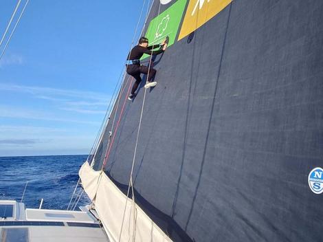 Dans cette flotte qui compte 33 bateaux en mer aujourd’hui, difficile de ne pas saluer les belles courses de DeVenir et Mail Boxes Etc. (MBE), deux bateaux à dérives qui rivalisent avec un trio de foilers (Bureau Vallée, DMG Mori Global One, Hublot) dans le sud des Canaries. Les alizés, qui souffleront bientôt dans leurs voiles risquent certes de les départager, mais les petits écarts affichés sont ceux de talentueux équipages qui tracent des trajectoires inspirées et maîtrisées. Notons aussi la remontée spectaculaire de Groupe APICIL, de retour sur la course après une escale technique à Lorient pour réparer sa bôme brisée. Ce lundi, il vient de doubler le duo sino-britannique de Singchain Team Haikou, qui n’ a pas eu peur de s'aventurer sur la face nord du parcours.