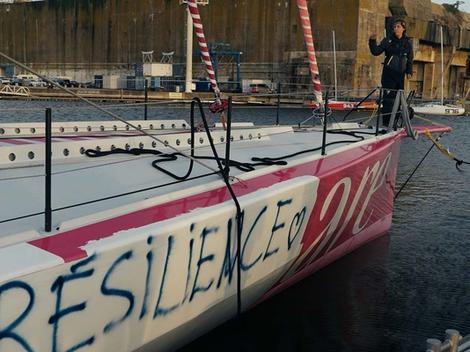 Enfin, parmi toutes ces courageuses histoires, si on ne devait en retenir qu’une, c’est bien celle de Tanguy Le Turquais et Félix de Navacelle. Après avoir tapé un OFNI dans la Manche, leur bateau Lazare est victime d’une importante voie d’eau. Ils se déroutent en urgence vers Lorient. Un contre-la-montre gigantesque s’engage pour colmater la fuite. Six jours plus tard, les skippers reprennent la mer. "Mon objectif, c’est bizarre de dire ça, mais c’est celui de terminer dernier de la Transat Jacques Vabre. C’est juste l’image de ne pas baisser les bras. Pour Lazare, mais au-delà de ça, pour les gens qui nous suivent, qui ont participé au projet, ça met en lumière des valeurs qui aident les gens dans leur quotidien." conclut Tanguy Le Turquais. Et comme pour se donner du courage, le sticker rose du bateau n’a pas été remis. A la place, 10 lettres ont été peintes sur la coque : RESILIENCE.