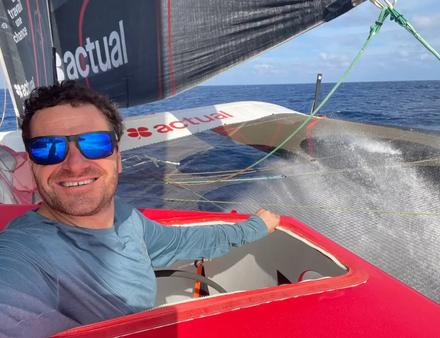 Ils vont plus vite au portant que les Ocean Fifty ! A plus de 25 nœuds de moyenne, Charal continue de mener un train d’enfer en tête de flotte, abattant plus de 600 milles dans la journée d’hier. Mais derrière, personne ne lâche le morceau. Si ce n’est Team Snef - TeamWork, bateau d’ancienne génération (2018), qui hélas n’a pu tenir le rythme ces dernières 24 heures dans ces conditions...