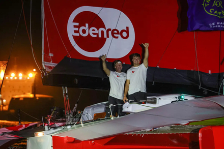 Quatrième à franchir la ligne, Solidaires en Peloton, emmené par Thibaut Vauchel-Camus et Damien Seguin termine au pied du podium, à seulement 44 minutes des vainqueurs. "La morale de cette course, apparemment, c'est qu'il faut être outsider pour la gagner !", préfère en rire Thibaut. Une pointe d’ironie, mais surtout une grande fierté pour le coprésident de la classe. "Je suis très content de ce podium qui vient gommer la dureté et la violence de ce début de course avec les trois chavirages", commente le skipper. "Notre classe, elle démontre quoi ? Qu'il ne faut pas avoir des bateaux dernier cri pour être à l'arrivée et pour gagner. Je pense que c'est une très belle valeur ajoutée." Damien Seguin, le sourire jusqu’aux oreilles, semble avoir déjà oublié son classement, trop heureux du spectacle offert sur l’eau. "On vous a réservé une belle fête aujourd'hui avec tous les bateaux dans un mouchoir de poche. Ça a été une belle bataille sur l'Atlantique, ces dernières heures aussi, avec les copains. S'ils sont devant nous, c'est qu'ils le méritent aussi."