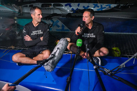 Une nouvelle arrivée de nuit. Cette fois à une heure où le village a retrouvé sa quiétude et il faut plisser les yeux, depuis la Tour Lumina qui domine la baie, pour apercevoir au loin une agitation, des lumières et un nouveau géant. Le Maxi Banque Populaire XI fait son entrée à Fort-de-France. Un peu plus tard, Sébastien Josse et Armel Le Cléac’h s’assoient sur le flotteur pour la traditionnelle interview. On repense à une scène : il y a deux ans, même lieu, même lumière, mêmes skippers. Armel portait un lycra bleu, Sébastien un tee-shirt blanc ; ils sont tous les deux en noirs aujourd’hui. Les deux marins étaient sortis vainqueurs de leur duel avec SVR-Lazartigue, ils ferment la marche aujourd’hui.
