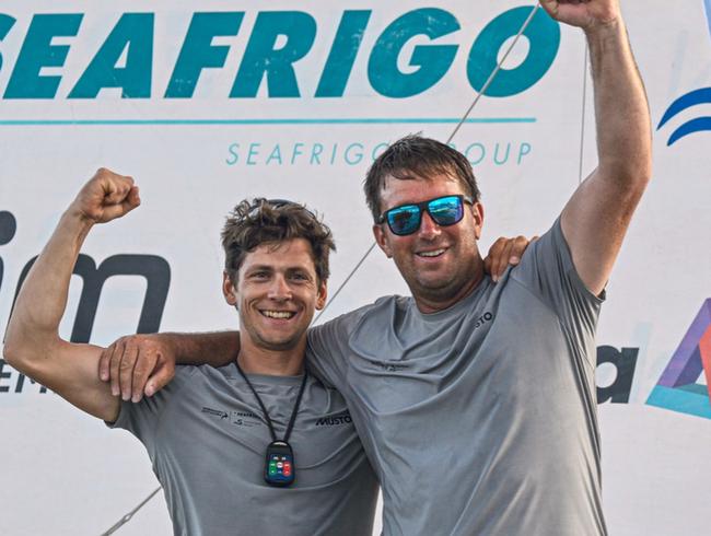 Cédric Chateau : "C’était l'équipage à battre, ils n'ont perdu qu'une seule régate cette année, c'est la Transat Café L'Or, pour 7 minutes. On est très contents d'être devant eux, c'est vraiment une équipe ultra forte, très préparée. Très heureux d'avoir su élever notre niveau de jeu et réussir à emporter la mise. Il y a une dizaine de jours, on a cassé une voile et on pensait que ça allait être rédhibitoire. On a réussi à s'en tirer, à s'adapter sans une voile qui était majeure pour trouver des nouvelles solutions. Je dirais quand même qu'on a flippé un petit peu pendant toute la transat, mais on n'a jamais baissé les bras, on a toujours essayé de trouver des solutions, d'aller de l'avant et de donner le meilleur de nous-mêmes."