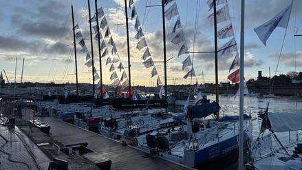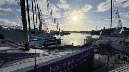 Les voiliers fin prêts, alignés sur les pontons : plongée en images dans l’attente du départ de la Transat Paprec 2025, et dans l’ambiance du village.