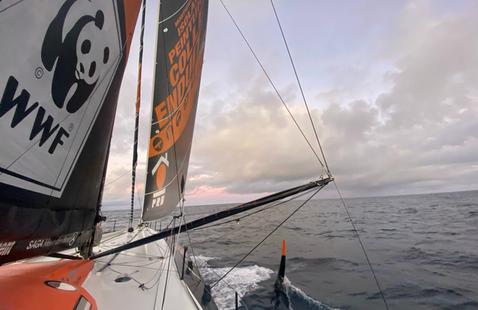 Le sudiste Sorel joue son jeu à fond et devrait virer de bord ce matin afin d’essayer de s’éloigner du vent fort et de la houle importante. Plus à l’Ouest, le groupe emmené par Thomas Ruyant et son foiler est en embuscade.