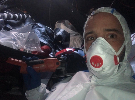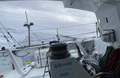 Louis Burton a dans le même temps constaté une importante fissure sur une cloison structurelle. En mode Mac Gyver, sur une mer encore bien formée, le marin s’est attelé à un travail de longue haleine : à l’aide d’une disqueuse, il a fallu poncer puis stratifier chacun des côtés de la cloison avec du tissu carbone et de la résine pour la solidifier. Un travail de 4 longues heures que Louis a pu effectuer pendant sa pénalité. Au vu de l’ampleur de la casse, le skipper aurait été de toutes les façons contraint de lever le pied pour remettre en ordre de marche son monocoque.