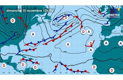 Alors que la flotte est en train de contourner Thêta (29e dépression tropicale de l’année), Fabrice Amedeo évolue entre deux systèmes météo. « Normalement, son objectif dans les trois prochains jours va être de viser au plus près de Thêta pour faire le moins de route possible, explique Eric Péron, co-skipper sur la Transat Jacques Vabre et binôme de Fabrice jusqu’aux derniers instants avant le départ. « La dépression tropicale est encore bien active aujourd’hui mais le temps qu’il arrive sur zone, d’ici 2 jours, elle va s’amoindrir. Il y aura 20 nœuds de vent, avec des rafales à 30 nœuds, ce qui sera beaucoup plus maniable que les 40 à 60 nœuds de cette nuit. Les premiers bateaux sont passés très près du centre pour faire moins de route. Mais ils ne vont pas très vite parce qu’il y a trop de vent et trop de mer. Fabrice va pouvoir faire une route plus courte et en moyenne plus rapide. En principe, il devrait rattraper les 6 bateaux devant lui au niveau du pot au noir. Il va réduire l’écart, c’est une évidence. »