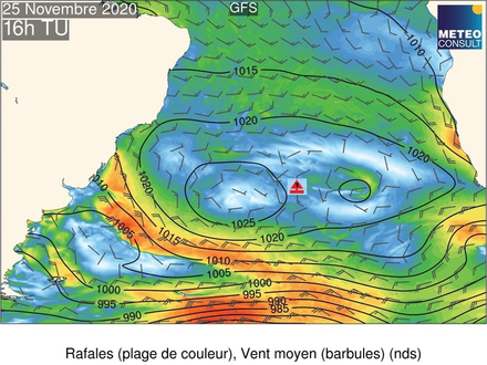 Cette séquence de 48 heures, jusqu’à vendredi matin, sera passionnante car elle constituera de fait une sorte de nouveau départ. Par chance, la molle n'est pas totale car une nouvelle petite dépression relative à 1021 hPa va se former au milieu des hautes pressions à partir de ce mercredi, régénérant un nouveau petit couloir de vent qu’il faudra attraper en vue de les mener vers le flux perturbé d’ouest, situé au niveau du 40ème « rugissant ».