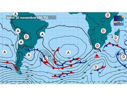 SITUATION METEO DU LUNDI 30 NOVEMBRE : passage au sud de Bonne Espérance