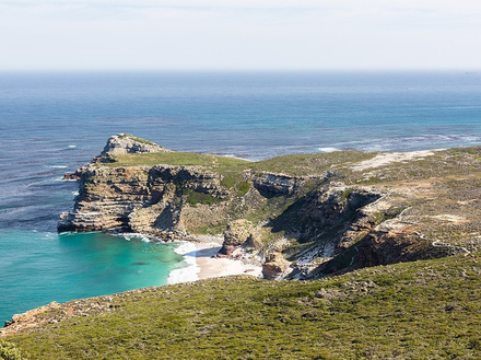 Parenthèse géoclimatologique à propos du Cap de Bonne Espérance qui n'est pas la pointe la plus au sud du continent Africain à proprement parler, c'est le cap des Aiguilles, situé à 150 km plus au SE de celui-ci qui est la vraie délimitation géographique. Le Cap de Bonne Espérance, non loin de la ville portuaire du Cap, bénéficie cependant d'une plus grande notoriété historique. Situé par 34° Sud, ce serait l'équivalent de la position de Casablanca sur la côte marocaine pour l'hémisphère nord. Surprenant, car les conditions climatiques sont bien plus redoutables au niveau du Cap de Bonne Espérance qu'à la latitude de l'Afrique du Nord. Cela est du au fait que la zone d'extension des dépressions australes et du froid remonte bien plus en latitude que les mêmes dépressions boréales dans notre hémisphère. La présence du continent antarctique est le principal facteur de cette configuration. Notons aussi qu'il reste nettement plus au nord que son homologue américain, le célèbre Cap Horn, situé, lui, par 55° Sud.