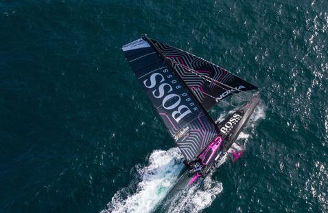 En queue de la flotte, J. Beyou navigue dans les faibles alizès de secteur sud-est lui permettant de reprendre un peu de vitesse même si cette orientation l'obligera à naviguer durablement au près.