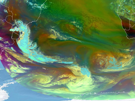 La tête de flotte navigue désormais entre le 40ème et 43ème parallèle, quasiment en limite de la zone d'exclusion, qui a été remontée par la Direction de la Course. Cette position, très sud, est nécessaire en raison d'une situation météorologique inhabituelle dans ces parages. En effet, l'anticyclone "de Sainte Hélène" est descendu tellement bas en latitude qu'il s'étire désormais entre le sud du Brésil et le sud de l'Afrique du sud, obligeant les concurrents à naviguer au sud de celui-ci pour profiter des grands vents d'ouest.