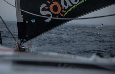 Joint par son équipe, Maxime a la voix claire, presque enjouée : “Je vais bien malgré les vagues qui explosent au-dessus du bateau. C’est vraiment très étonnant comme mer. Hier j’étais bien énervé et j’avais peur pour le bateau. Ça fait déjà plusieurs jours que ça dure, ça commence à être long. Mais aujourd’hui j’accepte la situation. Je fais le dos rond. J’essaie de faire quelques petits tours pour m’assurer que tout va bien. Cette nuit j'ai même fait l’autruche dans ma bannette en attendant que ça passe. Ma voilure est fortement réduite avec 3 ris et la trinquette. J’ai étonnamment bien dormi même si ça bouge dans tous les sens.”