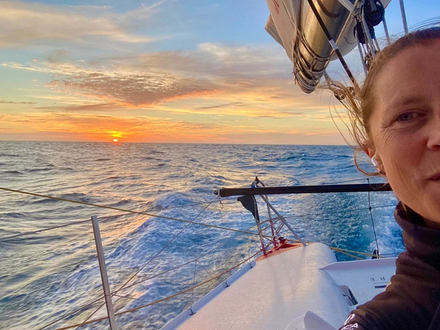Aujourd'hui est une folle journée ! Hier soir, il y avait assez de vent (environ 30 nœuds) et j'ai mis en place la J2 et 3 ris dans la grande voile pour que le bateau avance en tout sécurité, sous pilote automatique afin que je puisse bien dormir (l'avantage de ne pas être en course). Plus tard, il n'y avait que 8 nœuds de vent !! J’y suis donc retourné pour quelques changements de voile afin d’opter pour des plus grosses, juste le temps pour le vent de revenir à 35-40 nœuds ce qui m’a demandé de nouveaux changements ! On dirait que mon bateau est un adolescent sur le point de sortir avec ses amis et qui ne sait pas quoi porter – il change d’avis !! Maintenant, l'état de la mer est un peu délicat, je suis donc revenue à des voiles encore plus petites et pas de foils. Nous roulons à nouveau en toute sécurité au nord des Îles Kerguelen !