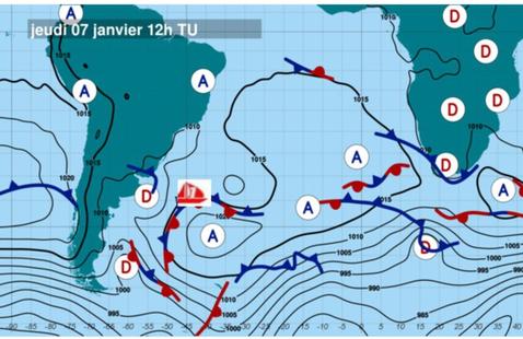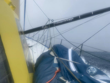 "On a eu une nuit assez agitée. Au final, le vent est rentré comme prévu. Il est rentré assez fort. J’ai eu 60 nœuds donc j’ai pris la décision d’affaler la Grand Voile. J’ai préféré jouer la prudence. Il est 10 heures du matin. J’ai renvoyé la toile, j’ai trois ris, J3 (la plus petite configuration de voile). Il y a 30 – 35 nœuds. C’est plus maniable. Ces derniers jours, on avait du vent allant de 18 à 50 nœuds donc c’était dur de trouver le bon tempo. J’ai essayé de jouer la sécurité et la prudence et de ne pas trop trop taper dedans. Le Cap Horn, c’est dans 4/5 jours. Maintenant, les conditions devraient s’améliorer donc il faut être en bon état pour poursuivre. Je crois qu’Alan a affalé sa Grand Voile un peu plus tard que moi. Pip elle a continué à attaquer. Pendant quelques heures, j’ai un peu mis la course en suspens et je me suis plus occupé de moi, du bateau, des manœuvres, veiller à ne rien casser. J’ai eu une petite frayeur quand je suis allé au pied de mât pour affaler ma Grand Voile. Le bateau s’est mis à enfourner jusqu’au pied de mât. J’avais de l’eau jusqu’aux genoux. C’était assez tendu mais on est en train de sortir du plus dur."