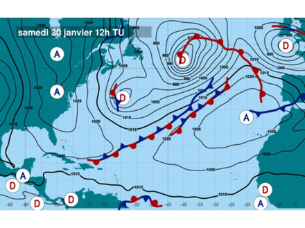 Bulletin Météo du Vendée Globe : tempête Justine en Atlantique Nord