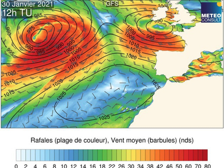 SITUATION METEO DU SAMEDI 30 JANVIER : TEMPETE DANS LE GOLFE DE GASCOGNE, VAGUES DE 9 M