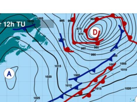 C’est dans de fortes conditions de vent et de mer que progresse A. Barrier, positionnée à mi-journée à l’est de l’archipel des Açores. A l’avant d’un front froid actif lié à une forte dépression à l’ouest de l’Irlande, elle progresse cap au nord-est sous un vent instable de sud-ouest autour de 20 nœuds et une mer forte avec des vagues de plus de 3 m. Au cours de l’après-midi, avec le rapprochement du front, le vent moyen va monter jusqu’à 30 nœuds et les vagues atteindre 4 m. Cette situation l’obligera à mettre du nord dans sa route pour progresser avec un meilleur angle. Le plus fort du vent passera ce soir avec 35 nœuds, avant un affaiblissement derrière mais dans une mer devenant très forte avec des vagues jusqu’à 5 m. Dans ces conditions, son cap ne devrait pas évoluer.