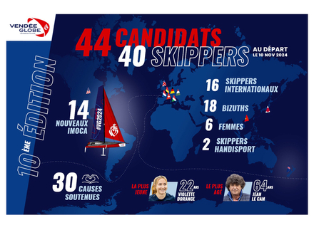 Pour connaître les 40 concurrents à prendre le départ le 10 novembre 2024, il faudra attendre l’arrivée de la dernière course de qualification et de sélection : la New York Vendée - Les Sables d’Olonne, dont le départ sera donné des Etats-Unis le 29 mai 2024.