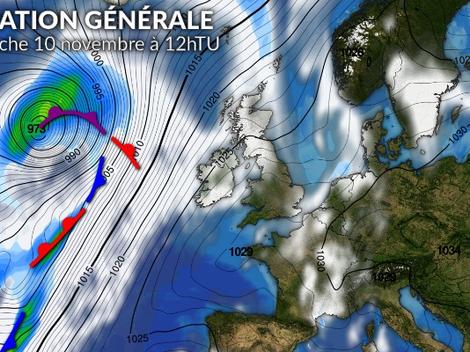 Elles sont assez fréquentes à cette période de l’année. Lorsque les dépressions circulent sur le nord de l’Atlantique à des latitudes élevées, la Vendée se trouve en marge des systèmes dépressionnaires avec des perturbations peu actives et des vents modérés. En revanche, lorsque les dépressions circulent entre l’Irlande et l’Angleterre, la Vendée subit de plein fouet l’assaut des perturbations avec le passage de fronts actifs associés à des coups de vent. Dans ce cas, les vents moyens peuvent atteindre une trentaine de noeuds et les rafales atteindre ou dépasser 45 à 50 noeuds. A cela s’ajoutent les fortes conditions de mer avec des houles d’ouest à nord-ouest dépassant parfois 5 mètres en allant vers le large.