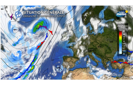 A 10 jours du départ, les premières modélisations atmosphériques envisagent avec une assez bonne fiabilité (80%), une situation anticyclonique pour le départ du Vendée Globe aux Sables d’Olonne. Cela se traduirait par de faibles conditions de vent sur le littoral vendéen à la mi-journée de ce dimanche 10 novembre. Si la fiabilité est bonne pour voir de faibles conditions de vent s’établir pour le départ, elle est beaucoup plus limitée concernant la direction du vent, qui sera fonction de la position précise du coeur de l’anticyclone qui devrait recouvrir l’Europe de l’ouest. Nous reviendrons donc de manière plus détaillée et précise sur les conditions météo pour le départ dans un prochain bulletin, prévu le mercredi 6 novembre.